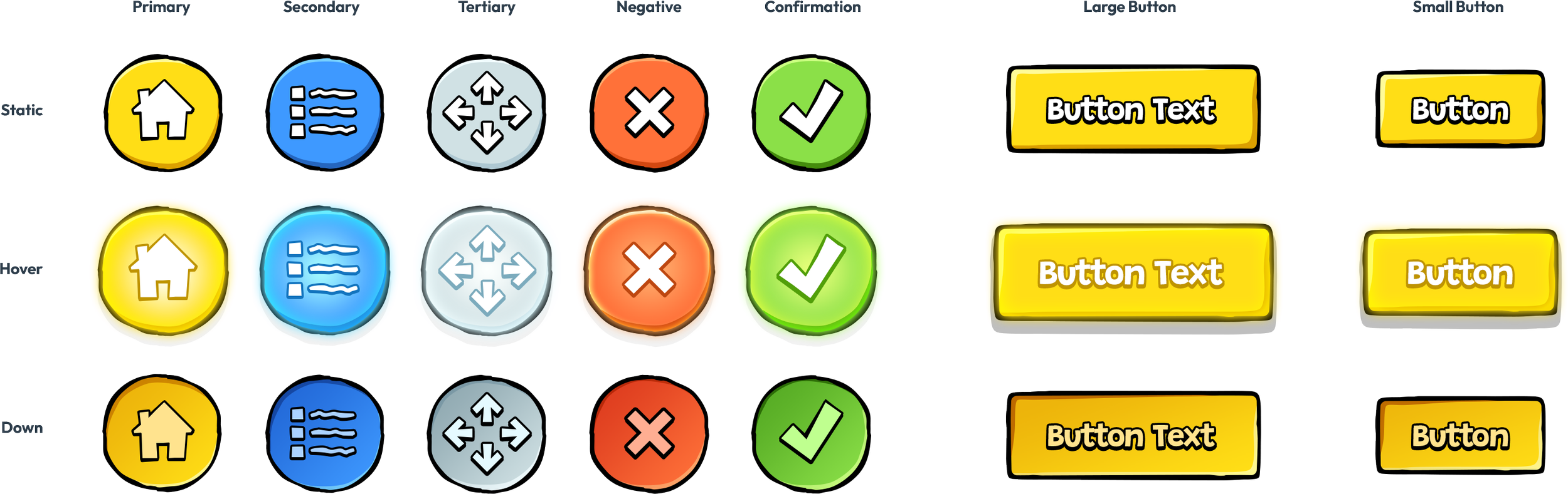 I wanted the style of the UI to borrow from the art style of the show. So, as inspiration, I looked to the clean, solid colours and occasional gradients with subtle glows that appear throughout the show. Since the age demographic was pretty low I knew we needed the UI to use icons in most case and not rely on the player being able to read.